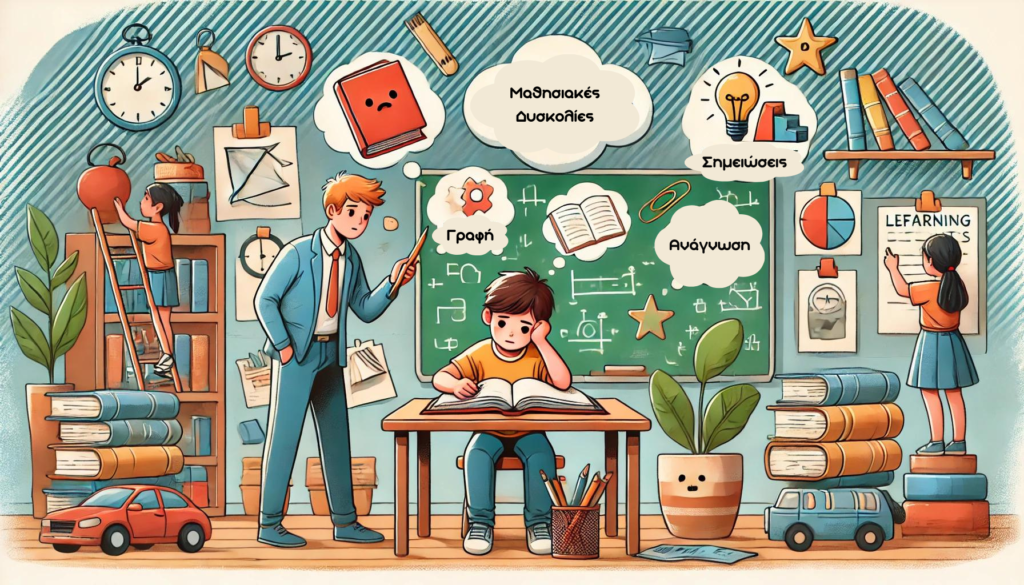 Οι μαθησιακές δυσκολίες αφορούν τις δυσκολίες που αντιμετωπίζει ένα παιδί σχολικής ηλικίας στην απόκτηση βασικών ακαδημαϊκών δεξιοτήτων, συγκεκριμένα στους τομείς της ανάγνωσης, της γραφής, της ορθογραφίας και των μαθηματικών. Οι δυσκολίες αυτές χωρίζονται σε δύο κατηγορίες, στις γενικευμένες και στις ειδικές μαθησιακές δυσκολίες.